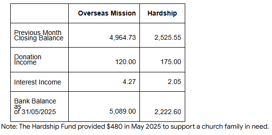 Church First Aid Volunteer Recruitment: The church is currently recruiting volunteer first aiders. Applicants must hold a valid first aid certificate with at least one year of validity remaining (NZQA certification is not required). If you are willing to be on duty during church gatherings, please email your name, congregation, and the expiry date of your certificate to hwc@holywordchurch.org.nz. Deadline is 30 June. If you have any questions, please contact your congregation’s deacon.
